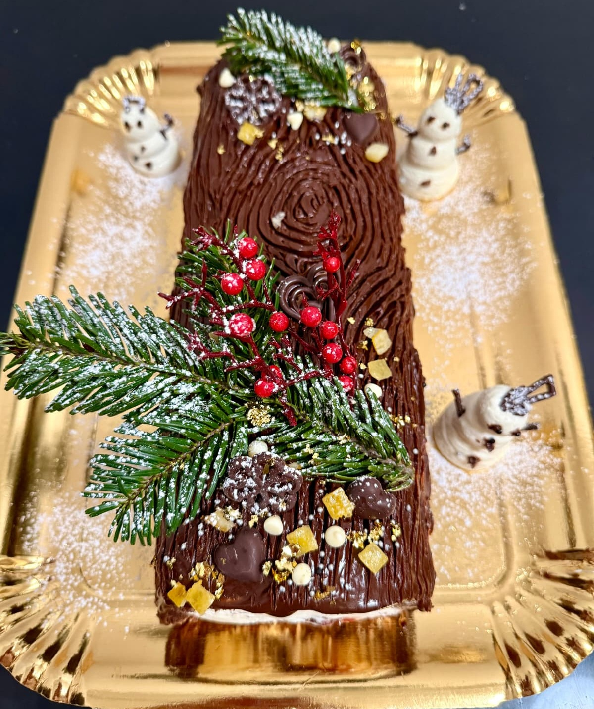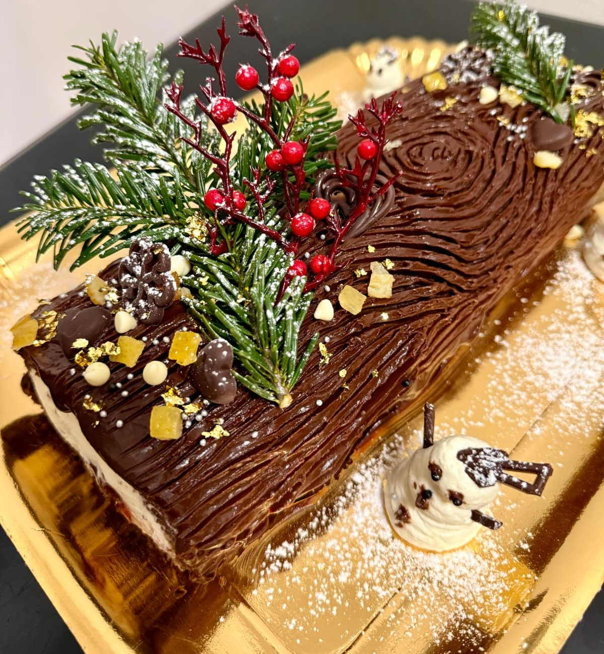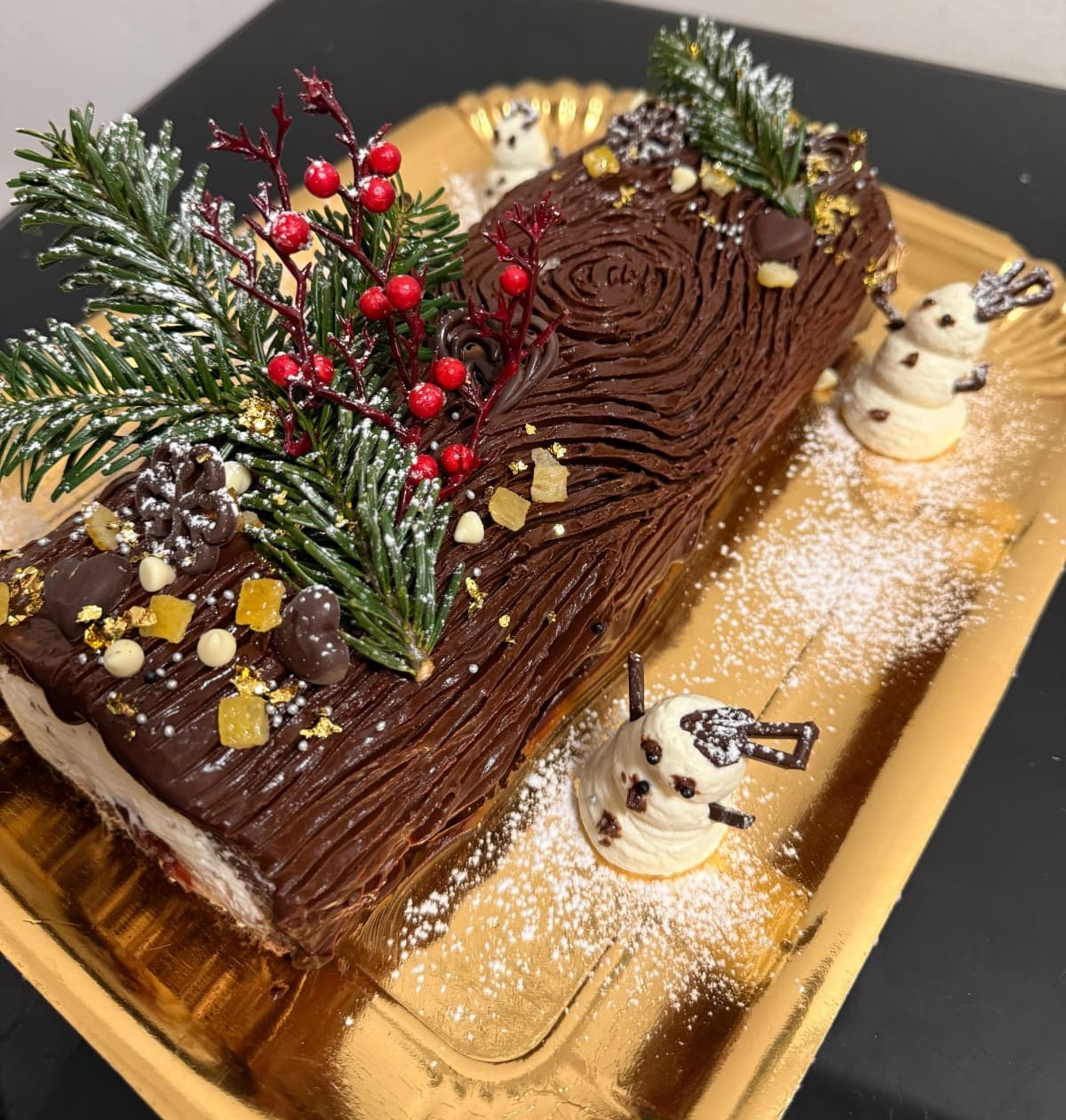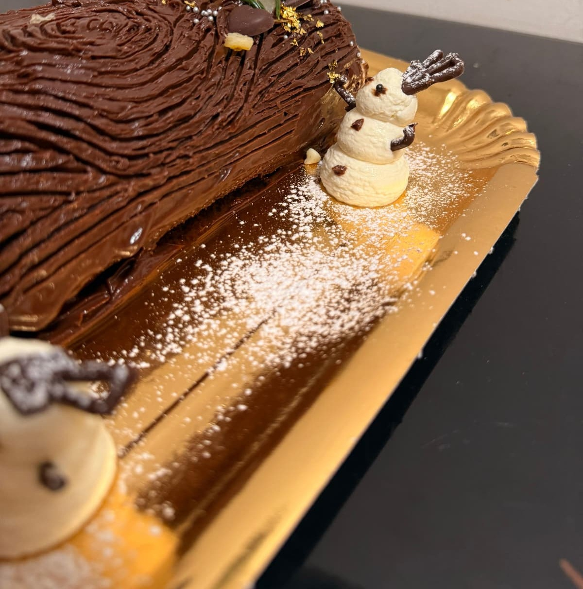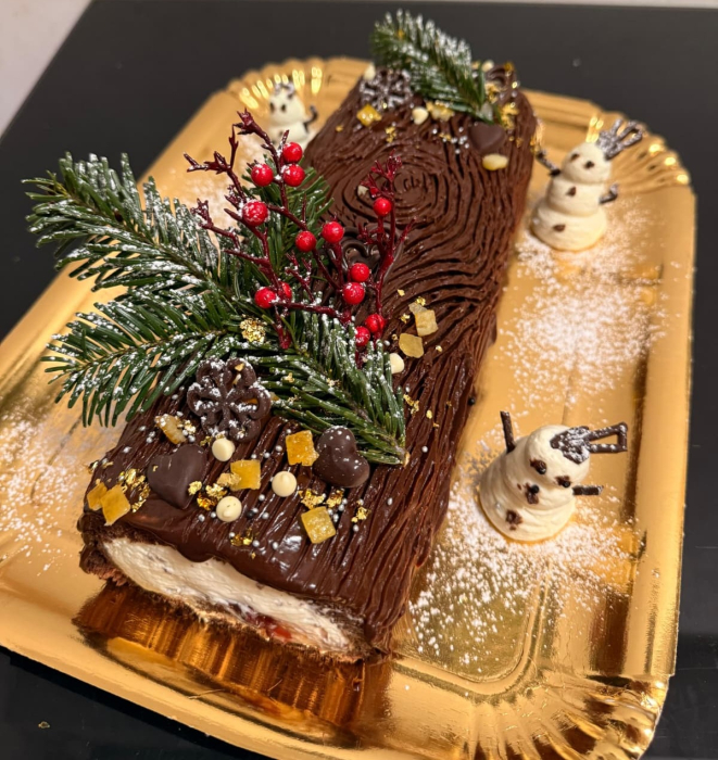 Buturuga de Crăciun sau Anul Nou este unul dintre acele deserturi care aduc instant atmosfera magică a sărbătorilor. Preparată artizanal în laboratorul nostru, fiecare buturugă începe cu un blat pufos de cacao, atent rulat și umplut cu o cremă fină de vanilie, catifelată și aromată exact cât trebuie.